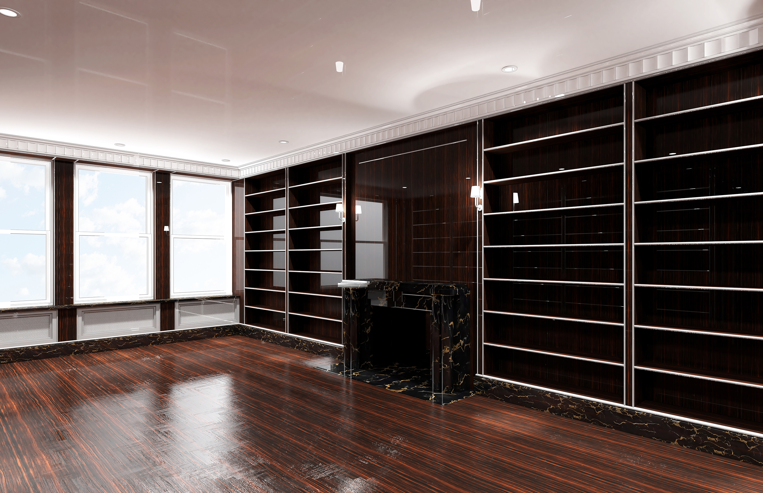 This renovation for a lawyer focuses around the creation of a beautiful new library, along with the renovation of the kitchen and bathrooms, all in a classis art deco style.